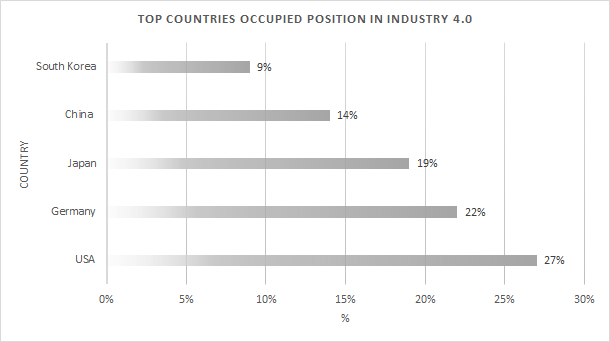 Even though we talk about cooperation provides unity but somehow competition will be there to hold the top position in any technology section. The graph below shows which countries are showing a serious attitude and confidence in accepting Industry 4.0. As the door opens to new digitalization, it leads to many more innovations.