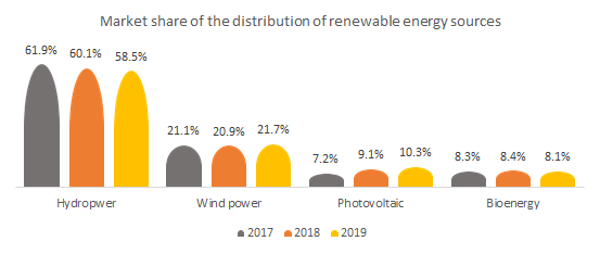 If you compare the market share for such distribution of the electricity generation, somehow over the years, the market share has been decreasing in the case of hydropower whereas the wind power and photovoltaics showed a slight increase, while the distribution rate for the Bioenergy has been constant over the years. The demand for solar panels has been led to the involvement of photovoltaic technology more, the panels are more efficient and easier to be built on the roof or can be used effectively for the roads on the top surface of the buildings or company or industry roofs.
