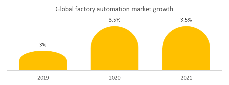 The global automation factory market from 2019 to 2021 can see a good amount of growth. The growth can be observed from 3% to 3.5%.
