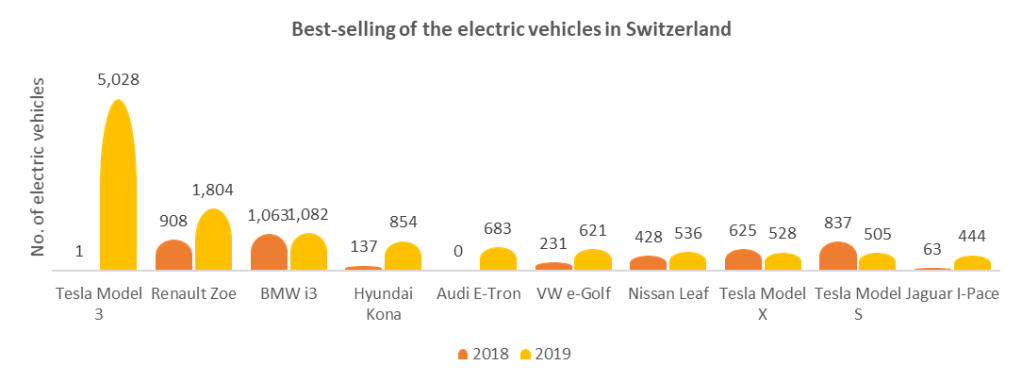 A survey by Auto-Schweiz shows the comparison of e-vehicles sold in Switzerland. The best e-vehicle brands in Switzerland are:-
