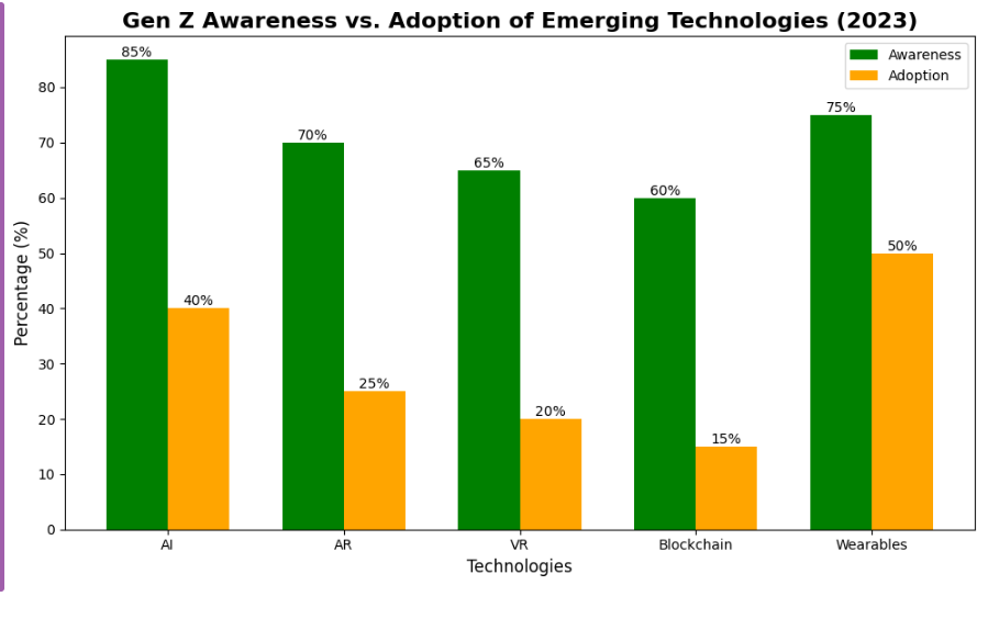 | Artificial Intelligence (AI) | 85% | 40% | Gen Z uses AI-driven tools such as ChatGPT. |