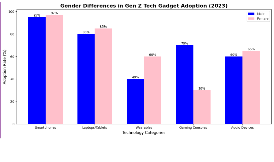 - Male Gen Z individuals are more likely to adopt gaming consoles and VR devices.